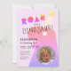 ROAR T-Rex Dinosaur Neon Pink Photo Girl Birthday Invitation