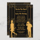Put on the ritz! Roaring 20s art deco flapper girl and gangster party glitz and glam, gold and black invitations.