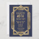 Roaring 20s Art Deco Navy Blue | Gold 40th Invitation