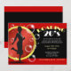 The era is the 1920's, the theme is the Roaring Twenties, and the premise is drinking (giggle water) and having a great time! These custom party invitations are designed in red, gold, and black colours featuring a flapper girl silhouette and sparkly bubbles.