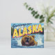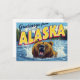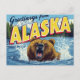 This striking, retro-style design captures the spirit of the Last Frontier. It features bold, vintage-inspired "Greetings from Alaska" typography set against a dramatic backdrop of glacial mountains and dense forests. The centerpiece is a powerful, roaring Grizzly Bear, also known as the Brown Bear, emerging fiercely from the water. This classic artwork is perfect for fans of vintage travel art, wildlife, and the majestic wilderness of Alaska. It makes a wonderful souvenir, travel memento, or gift for locals, tourists, and anyone who loves nature and the great outdoors.