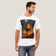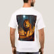 A powerful lion stands proudly, wearing a stylish T-shirt that contrasts with its majestic mane. The T-shirt is snugly fit, featuring a bold design that complements the lion's regal aura. The lion's golden fur and thick mane frame the shirt, highlighting its fierce yet laid-back demeanour. Its eyes are sharp and focused, exuding confidence, while the casual attire adds a playful twist to its formidable presence. The scene captures the essence of strength combined with a touch of modern, cool fashion.