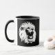 Roaring lion face simple black and white graphic design in the style of a stencil artwork.