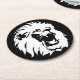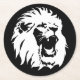 Roaring lion face simple black and white graphic design in the style of a stencil artwork.