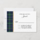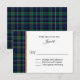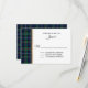 Scottish highland themed wedding response card done in white, with a stripe of clan Robertson's tartan plaid, on the left, with a gold tone line border. Personalise the text to suit your wedding needs. Matching products are available.