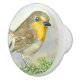 Robin bird on a frosted juniper branch ceramic knob