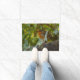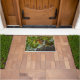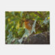 A European Robin (Erithacus rubecula) standing on a wooden fence in a garden.