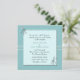 Lovely blue square linen look wedding invitation, with a lighter robin's egg blue text area, in the middle. Elegant graphics of blue dragonflies decorate the upper left corner and lower right corner of the text area. Customise the text to suit your needs. Matching products available.
