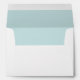 A customisable classic wedding invitation lined envelopes in a delightful robin's egg blue with text in white; part of a set wedding suite of same design products.wedding correspondence, print collateral and favours.