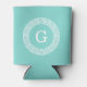 Robin Egg Wht Greek Key Rnd Frame Initial Monogram Can Cooler