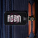 This graphic offers a contemporary reinterpretation of the Robin emblem, blending classic elements with modern design sensibilities. The logo centres around a bold, geometric depiction of the word "ROBIN," set in stark white against a deep black background, encapsulated within a striking pink circle that adds a dynamic visual contrast. The circle not only frames the text but also breaks through it, suggesting Robin's emergence from the shadow of Batman to establish his own identity. The use of pink adds an unexpected twist, lending a fresh and modern vibe while still paying homage to the traditional red associated with Robin. This design captures the essence of Robin's evolution as a character, blending his heroic legacy with a sleek, urban aesthetic suitable for a new generation of fans.