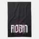 This graphic offers a contemporary reinterpretation of the Robin emblem, blending classic elements with modern design sensibilities. The logo centres around a bold, geometric depiction of the word "ROBIN," set in stark white against a deep black background, encapsulated within a striking pink circle that adds a dynamic visual contrast. The circle not only frames the text but also breaks through it, suggesting Robin's emergence from the shadow of Batman to establish his own identity. The use of pink adds an unexpected twist, lending a fresh and modern vibe while still paying homage to the traditional red associated with Robin. This design captures the essence of Robin's evolution as a character, blending his heroic legacy with a sleek, urban aesthetic suitable for a new generation of fans.