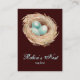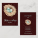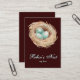 Custom business cards featuring a warm and inviting robin bird's nest with three aqua or turquoise eggs. A quaint image for your personal or business use. The text is shown in aqua blue and is completely customisable. Use the easy template provided, or click on "customise it" to change font style and colour or move things around. Shown with a chocolate brown background, but you may change that, if you like. These can be used as business cards or for special occasions, such as weddings! The design comes from an original artwork by Amanda Calhoun--Copyright 2012--All rights reserved.