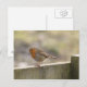 A European Robin (Erithacus rubecula) standing on a wooden fence at The Rising Sun Country Park, Newcastle upon Tyne.