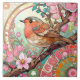 Robin Red Breast Bird Pink Floral Spring Flowers Tile