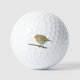 Golf ball with photo of European robin (Erithacus rubecula) perching on a thin branch