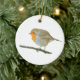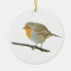 Ornament with photo of European robin (Erithacus rubecula) perching on a thin branch