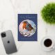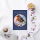 Send the festive charm of the robin with your Christmas greetings. This cute card features an illustration of the robin redbreast within a circular 'frame', on a dark blue background. The words 'Merry Christmas' are at the top, in elegant script typography. Personalise the card with your name(s) or other text for an individual finishing touch. The cheerful card is decorated with foil highlights in your choice of gold, silver or rose gold. A warm-hearted traditional design, ideal for nature lovers.