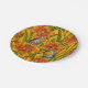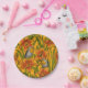 Robins and lilly flowers, orange and green paper plate