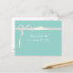 That perfect shade of turquoise; not quite blue, not quite green, but very much the classic robins egg colour of a certain jeweller! We've even added a white ribbon illustration to resemble a gift box. What a gorgeous, classic design this is. We offer it on a variety of products so you can match your announcements and cards to the colours of your wedding.