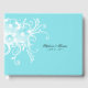Pretty wedding guest book done in robin's egg blue, with modern white floral designs, accenting one side. Personalise the black text for your special day.