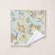 Robins Egg Blue with Brown Shades of Florals Bath Towel Set. A beautiful design in soft shaded blue with trim at top/bottom of towels, wash cloth. Great for home decor, gifting, showers, birthdays and more.