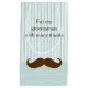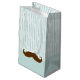 Small robin's egg blue groomsmen gift bag, with stripes and small polka dot patterns, and a big brown moustache. Personalise the brown text, on the front of the bag, to read what you want.