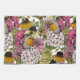 Hand-drawn pattern with various flowers- hydrangea, anemone, peony, dahlia and robin birds