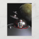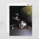 A group of 3 retro Toy Robot - 7's fly saucers around a small moon