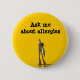 A robot stands annoucing "ask me about allergies" Ideal badge to tell strangers you have allergies. Great for kids with allergies. Customise the text and background for free during the checkout process.