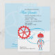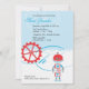 A darling customisable baby shower invitation featuring a blue and red robot design. Matching thank you card and favour sticker.