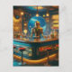 Robot Bartender in Interstellar Space Age Dive Bar Postcard
