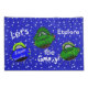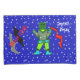 One-of-a-kind kids space king size pillow case sets. Fun navy blue background with lots of stars and the wording, Let's Explore the Galaxy, Blast-Off. Floating in the galaxy is Captain Zacky a green robot alien boy with his spaceship friends, Dragon Spaceship, Dino the Dinosaur Spaceship, and Zippie the Blue Fish Spaceship. Cool space robot theme for kids rooms. Designed for king size pillow cases. Original Graphic Artwork Cartoon Characters Design Copyright © 2014 TamiraZDesigns. All Rights Reserved.