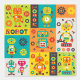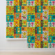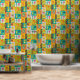 Robot Colourful Fun Orange Green Yellow Pattern Wallpaper