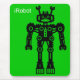 A weirdly cute robot in black and on green with iRobot written in the top left.