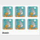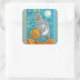 ROBOT PICKING PUMPKINS , HALLOWEEN MECHANICAL MAN SQUARE STICKER