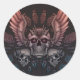 An original tattoo inspired art style illustration of a robot skull with wings, two smaller skulls at the side and robotic, mechanical detail in the background. This unique design was made specifically for Zazzle, featuring professional digital artwork and can be fully customised to add additional photos and text to suit. It would be ideal for tattoo admirers, comic book fans, rock and metal music lovers and anyone interested in sci-fi or skull based art, or would make a great gift for those interested in receiving a cool, edgy, urban, cartoony product for their birthday, or other occasion. This exclusive design is not available in other stores!