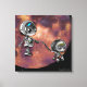 Fun canvas print of a metallic looking robot walking a robot dog in space, with a red tone planet in the background. Great gift idea for any sci fi lover.