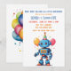 "Beep! Beep! Calling all little engineers! robot theme with balloons watercolor