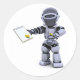 This design is a robot with a clipboard. The robot is standing holding the clipboard and a pencil. This robot with a clipboard design looks great on this Stickers
