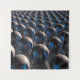 Thousands of robots await activation, idle in rows as twilight looms.