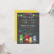 Robots Birthday party invitations personalised, Robots illustration in bright yellow, red, green and blue colour.