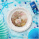 This whimsical paper plate features a vintage illustration by children's book illustrator Anne Anderson. The colours are subtle and beautiful in pinks and soft whites. Celebrate the arrival of your little one with a classic nursery rhyme theme! The text can be easily updated to your details and if you would like to you can change the font style, size, colour and placement. See matching items in my Rock a Bye Nursery Rhyme Baby Shower Collection.