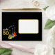 Rock and roll 50th birthday party self addressed envelope. Personalised rocks 50 for the rockstar husband, boyfriend, brother, dad or partner with these funky psychedelic guitars and cool gold typography on on black background. Unique colourful guitar illustrations with electric guitar with Fire flame and red pick guard, a multicoloured semi acoustic guitar and a psychedelic classic acoustic guitar. Easy to use template with personalised name and RSVP return address creates the perfect party stationary to celebrate fifty in rock n roll style. Ideal trendy party stationary for a guitarist, musician, live music band and music lovers. Any guitar player will tell you that you can never have too many guitars. This cool modern musical instrument design celebrates the music energy of this wonderful musical instrument and is the perfect way to rock a fiftieth birthday celebration. Original artwork by artist Catherine Sweetman