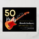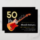Cool rock and roll 50th birthday party gold foil and black invitation for him because 50 Rocks and so does your rockstar husband, boyfriend, dad or friend who’s celebrating his fifty milestone birthday. Musicians, guitar players and live music lovers will love this trendy musical theme. Flame electric guitar with red pick guard illustration, musical notes and gold modern typography script to celebrate them in rock n roll style. Easy to use templates so you can add the birthday celebrants name, Ideal for a black and gold colour theme. Check out the rock and roll 50th birthday party 50 Rocks collection for matching party supplies. Musicians, guitar players and live music lovers will love this trendy musical theme. Original artwork by artist Catherine Sweetman