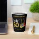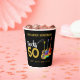 Personalised name in gold modern typography Rocks 50 fun psychedelic guitars and music 50th birthday party paper cups with three cool colourful watercolor electric guitar, acoustic guitar and semi acoustic guitar designs on black background. Easy to use template to customise the age and name creating the perfect party cup to celebrate fifty in rock n roll style, ideal for a guitarist, musician and music lovers. This cool modern musical instrument design celebrates the music energy of this wonderful musical instrument and is the perfect way to rock a fiftieth birthday celebration. Original artwork by artist Catherine Sweetman