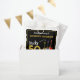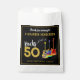 Rock and roll 50th birthday party thank you favour bags with funky psychedelic guitars, musical notes and cool gold typography on black. 50 Rocks for the rockstar husband, boyfriend, brother, partner or dad with these unique colourful electric guitar, semi acoustic guitar and acoustic guitar illustrations in vibrant bright colours. Personalise this easy to use template to create the perfect party themed thank you favour bag to say thank you to your guests for celebrating fifty in rock n roll style. Ideal for a guitarist, musician, live band and music lovers. This cool modern musical instrument design celebrates the music energy of this wonderful musical instrument and is the perfect way to rock a fiftieth birthday celebration. Original artwork by artist Catherine Sweetman