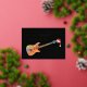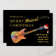 Bring some festive guitar music cheer to the christmas season with this fun merry musical christmas modern black and gold foil holiday card. Funny hand drawn colourful electric guitar wearing a Santa hat illustration with gold foil musical notes and typography script all easy to personalise with the template. Ideal for music loving families to send seasons greetings and for guitar players, music teachers and musicians. Original artwork by artist Catherine Sweetman