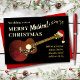 Bring some cool rock and roll to christmas with this rustic acoustic guitar wearing a Santa hat custom holiday greetings card. This fun merry musical christmas modern black and gold foil typography holiday card is easy to personalise using the templates. Fun hand drawn rustic wood effect acoustic guitar with gold foil detailing along the fretboard, strings, keys and musical notes. Ideal for music loving families to send seasons greetings and for guitar players, music teachers and musicians. Original artwork by Catherine Sweetman