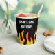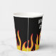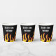 Throw a rocking birthday bash with personalised party supplies like these paper cups featuring illustrations of flames in yellow and red set against a black background. Your custom message is spelled out in white heavy metal style lettering.
